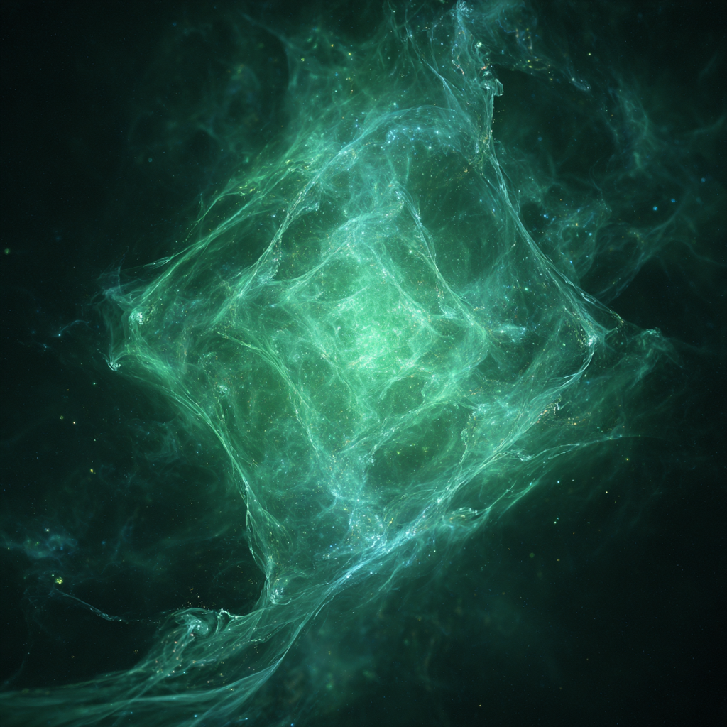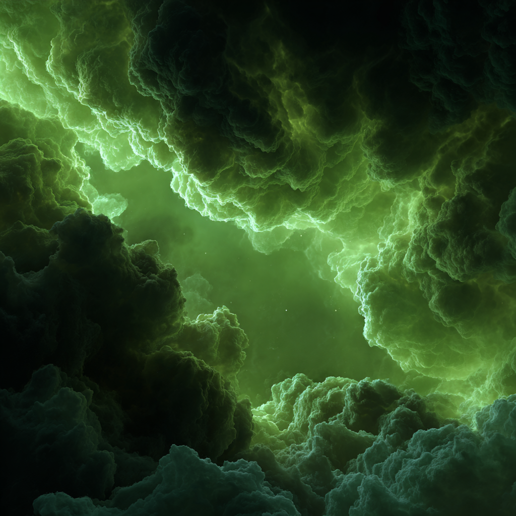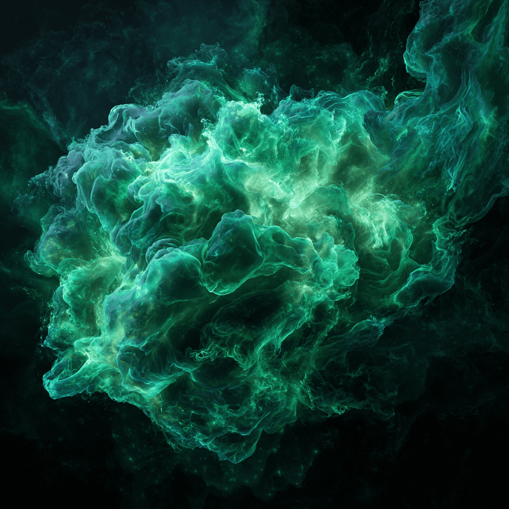 “Verdant Lumina” is part of an ongoing meditative art series exploring ectoplasmic cloud formations that emerge during deep contemplative states. Created by Maria Stella Tupynambá, this piece translates inner energetic impressions into a visual form, blending translucency, iridescent green light, and abstract movement to express non-physical presence and intuitive states of awareness.